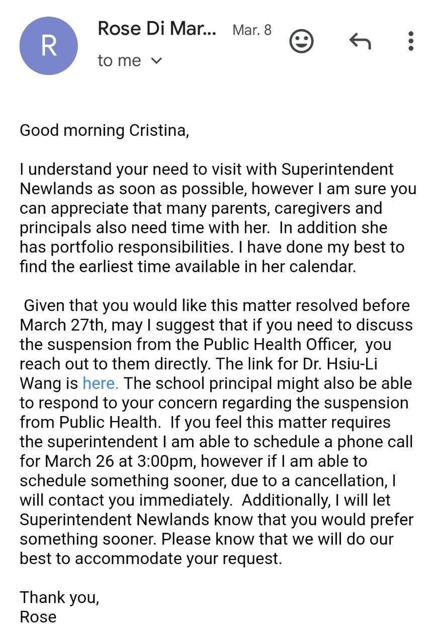 This was to go out weeks ago, but *with* responses from the school boards regarding the suspension orders dispatched to thousands of households in early February. However, here we are on March 25th, and the deadline to resolve this issue looms just ahead, set for "before March 26th at 4:30 pm." Keep that date in mind; it will prove curious shortly.