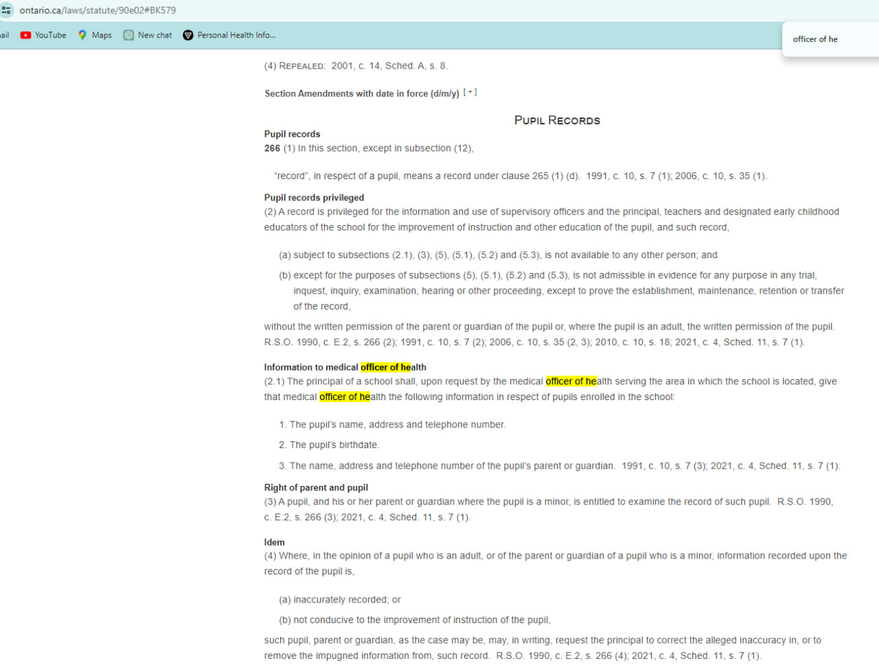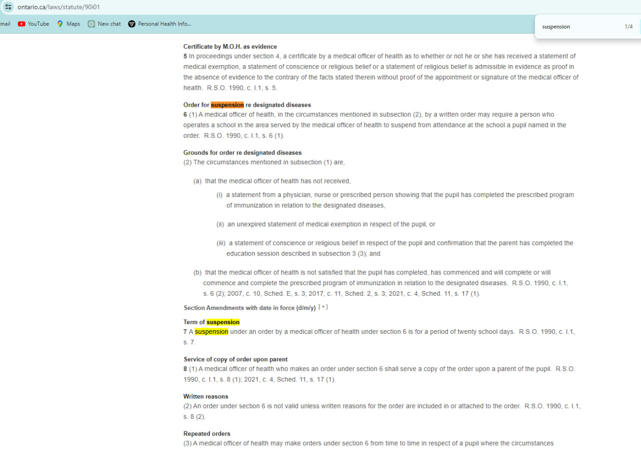 Naturally, I looked into the Immunization of School Pupils Act, R.S.O. 1990, c. I.1. Considering I was in kindergarten back in 1990, it's understandable that this legislation hadn't previously crossed my radar. Now that it's being brought to my attention, let's take a closer look, shall we?